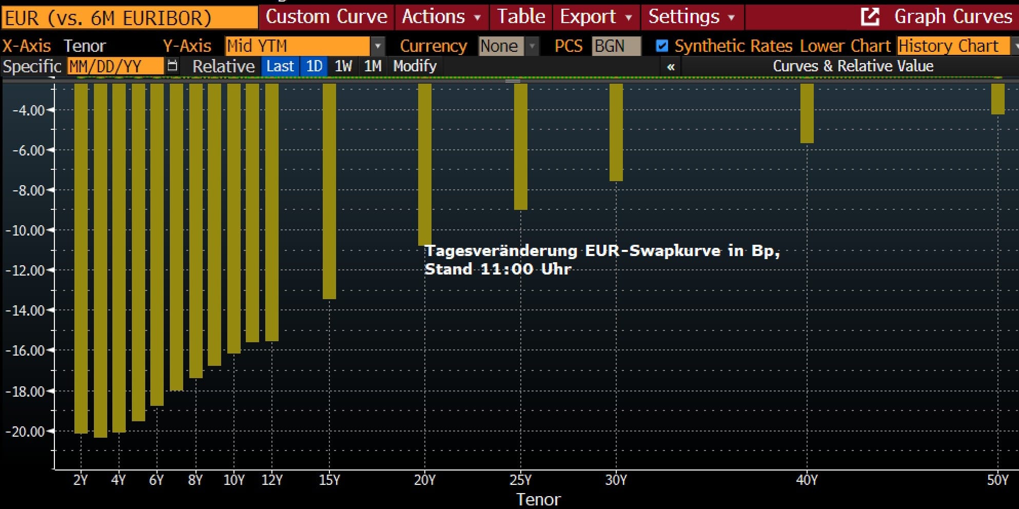 Das abrupte Repricing am EUR-Zinsmarkt zum Handelsstart heute Morgen ist, ähnlich wie bei den Aktien- und Kreditmärkten, primär als Eindeckung vorheriger Short-Positionen zu werten. Es handelt sich vor allem um eine technische Reaktion. Zwar hat sich das „Tail-Risk“ einer unmittelbaren militärischen Totaleskalation und deren verheerender Folgen für die Konjunktur der Eurozone etwas verringert und Hoffnungen, dass es nur zu transitorischen Inflationseffekten kommt, sind gestiegen, doch verharrt die Nervosität auf einem hohen Niveau. Ein valider Indikator für eine echte wirtschaftliche Entspannung wäre erst eine nachhaltige Einengung des Preisunterschieds zwischen „Dated Brent“ (Spotmarkt) und dem „Front Month“ (Terminmarkt). Solange das physische Öl deutlich teurer bleibt als der Terminkontrakt für Juni, bleibt die tatsächliche Belastung für die Industrie und die Inflationsdynamik bestehen – die „Papier-Entspannung“ an der Börse käme dann noch nicht in der Realwirtschaft an. (Zur Bedeutung des unterschiedlichen Ölpreises siehe gestriger Post)